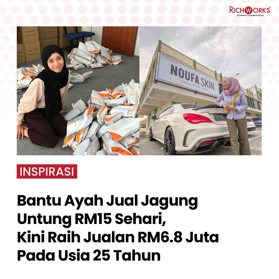 "Jualan hari itu cukup untuk saya dan ayah beli makanan hari itu. Kami akan ulang perkara sama dari 9 pagi, kalau jagung cepat habis, kami baliklah petang, kalau tak tunggu sehingga pasar malam tutup 10 malam," kongsi Pengasas Produk Noufa Skin, Nur Izzaty Salimun mengimbau kenangan membantu ayahnya menjual jagung ketika berusia 17 tahun.