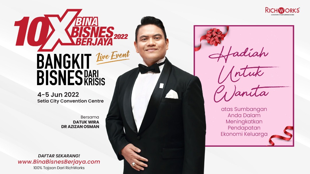 Nak persiapkan bisnes anda berdepan cabaran-cabaran masa ini? Korbankan masa anda pada 4 & 5 Jun 2022 ini bersama MenThor Datuk Wira Dr Azizan Osman di Setia City Convention Centre, Setia Alam dalam Program 10X Bina Bisnes Berjaya - Bangkit Bisnes Dari Krisis.