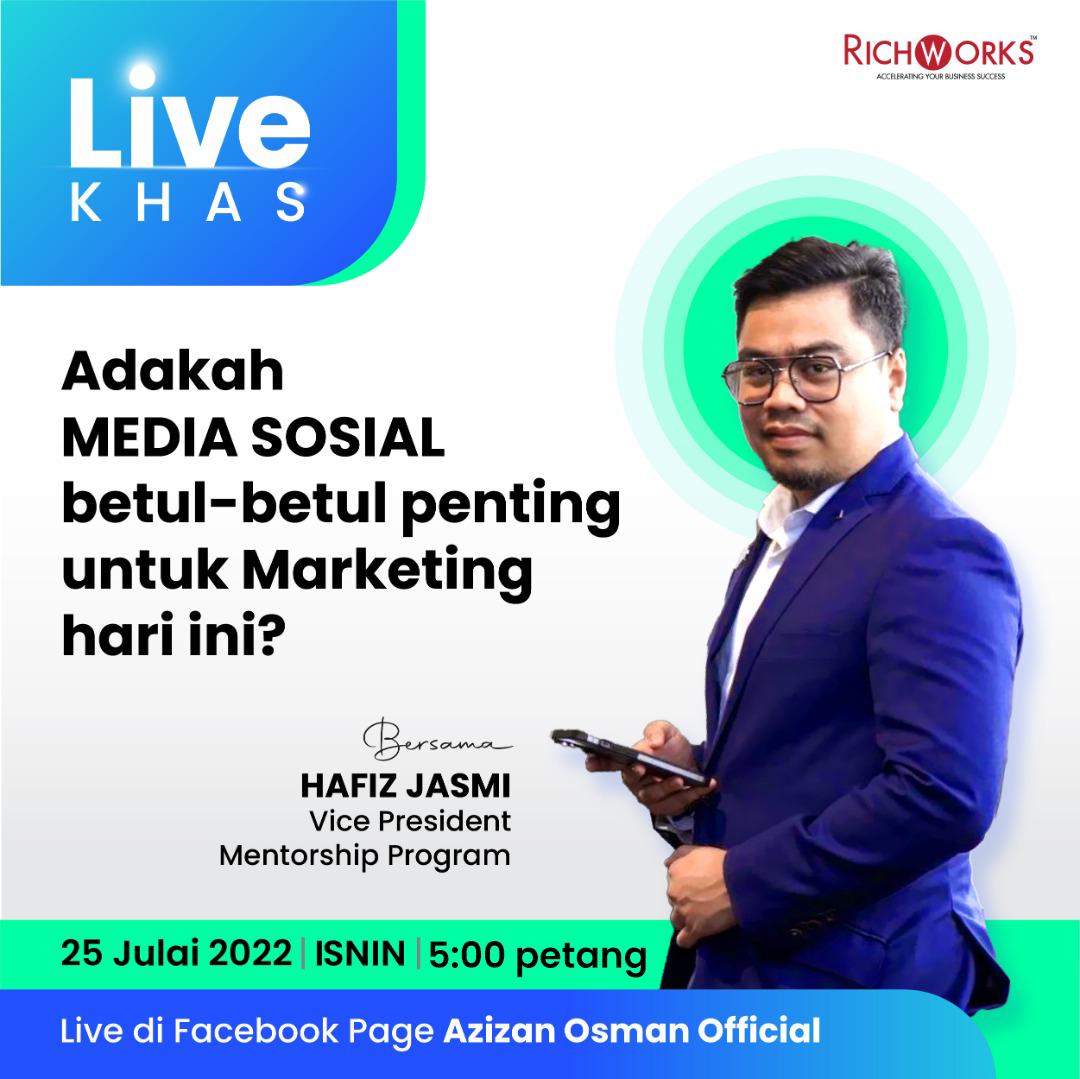 Anda juga perlu daftar ke Workshop Kuasai Social Media pada 30-31 Julai 2022, ditaja 100% RichWorks di link richworks.com/wksm untuk dapatkan ilmu pemasaran terkini tentang media sosial.