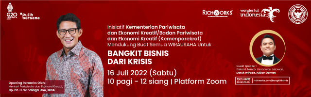 Menteri Pariwisata dan Ekonomi Kreatif, Bp. Dr. H. Sandiaga Uno, MBA menjemput kami untuk berkongsikan ilmu dan bimbingan buat usahawan SME di Indonesia dalam sesi khas ini.
