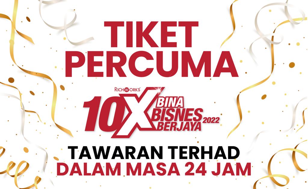 Ianya tak dibuka kepada umum ya! Hanya anda yang mengikuti Dr. Azizan dan RichWorks di platform Telegram dan group media sosial kami bakal dapatkan tiket percuma ini! Jika anda sudah daftar sebelum ini, jangan lupa rakan-rakan anda yang ada. Boleh saja daftarkan untuk mereka. 10X Bina Bisnes Berjaya akan menyediakan bangsa usahawan bagi mengharungi baki suku keempat tahun 2022 ini. Cabaran makin berat alluser! Dapatkan tiket 10XBBB percuma ini, klik butang di bawah: | |