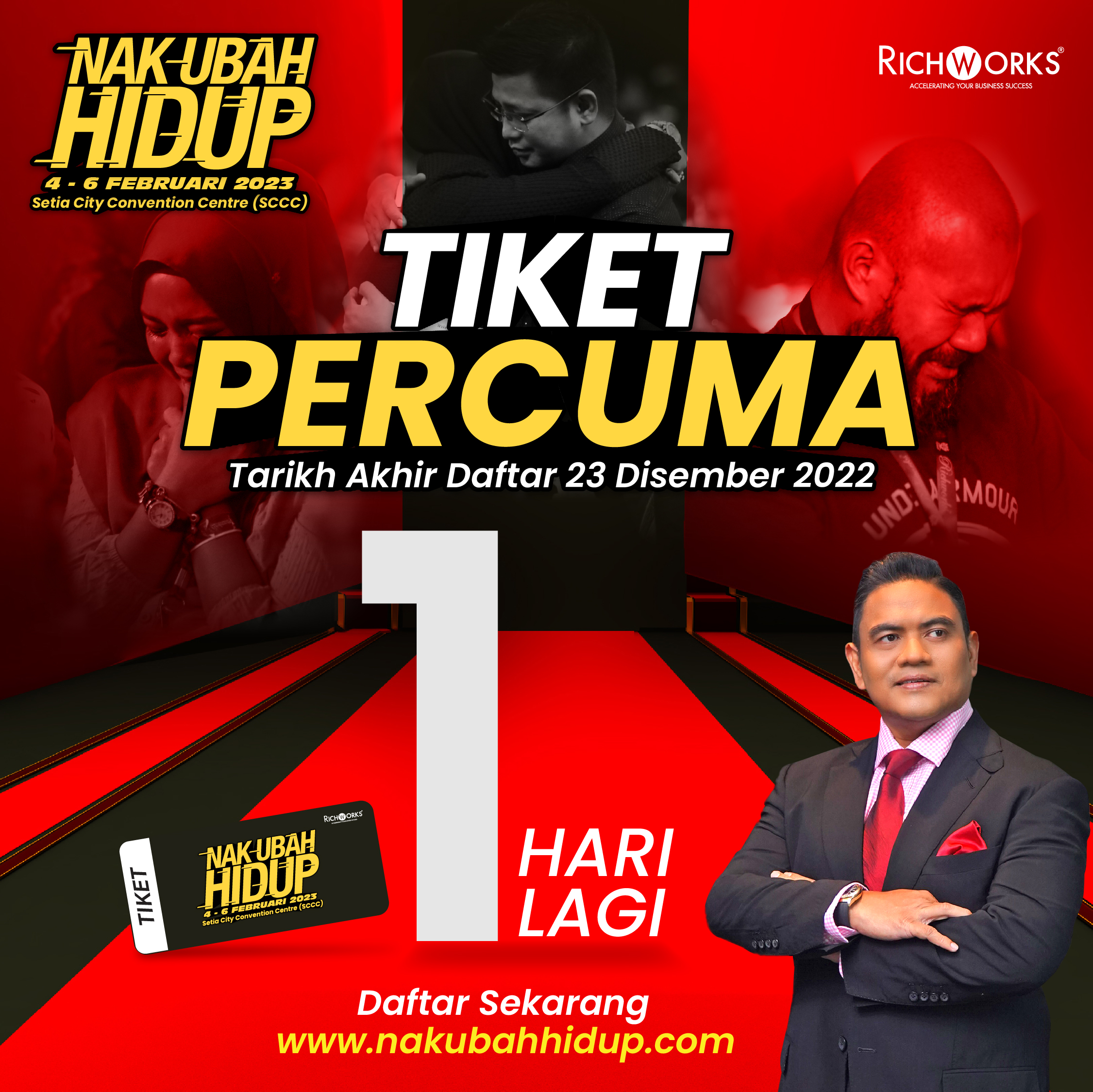 Dapatkan seat anda SEKARANG sementara anda boleh dapatkan TIKET Terhad secara 100% PERCUMA tajaan RichWorks sehingga 23 Disember 2022 jam 11:59 malam!