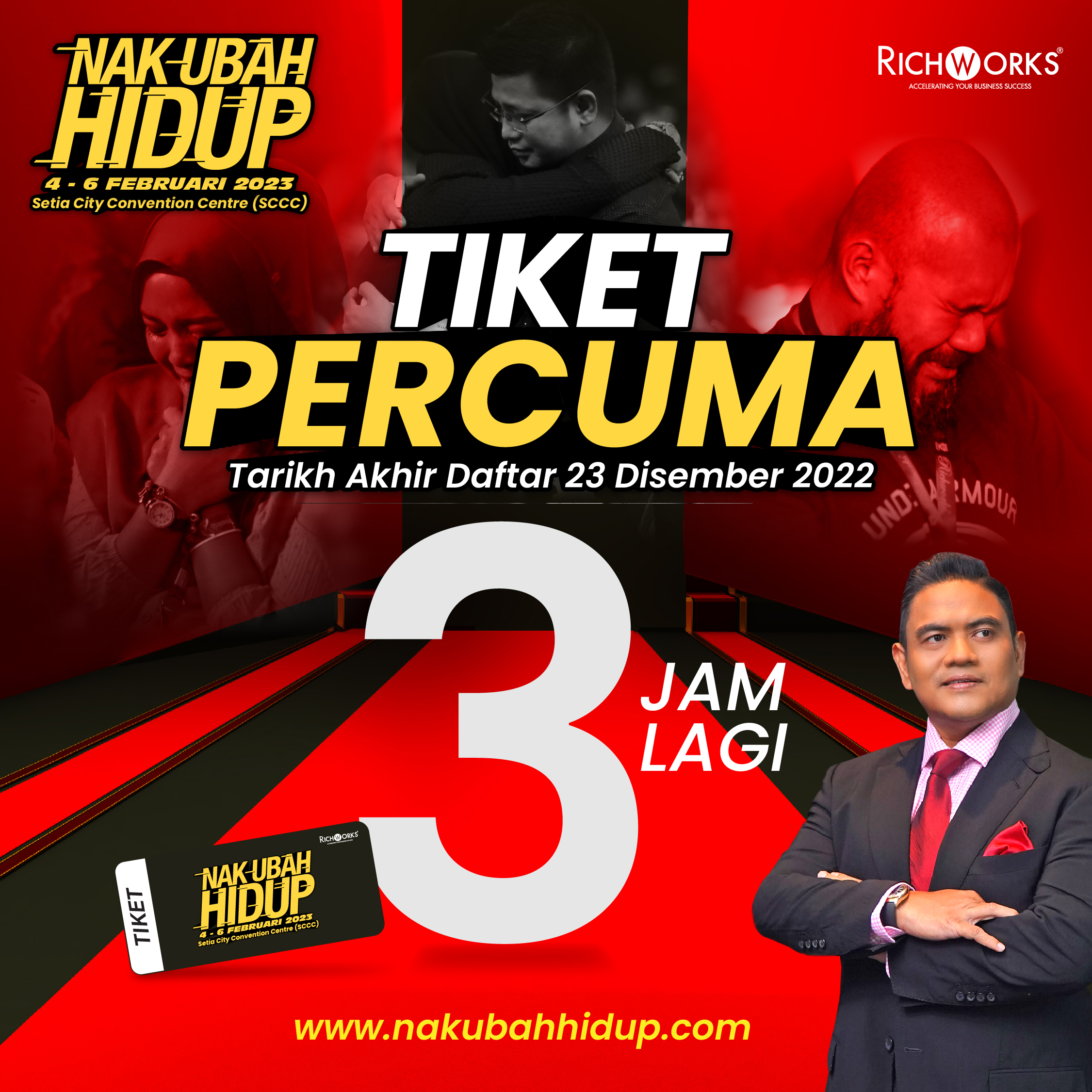 Dapatkan seat anda SEKARANG sementara anda boleh dapatkan TIKET terhad secara 100% PERCUMA tajaan RichWorks sehingga jam 11:59 malam ini! | |
