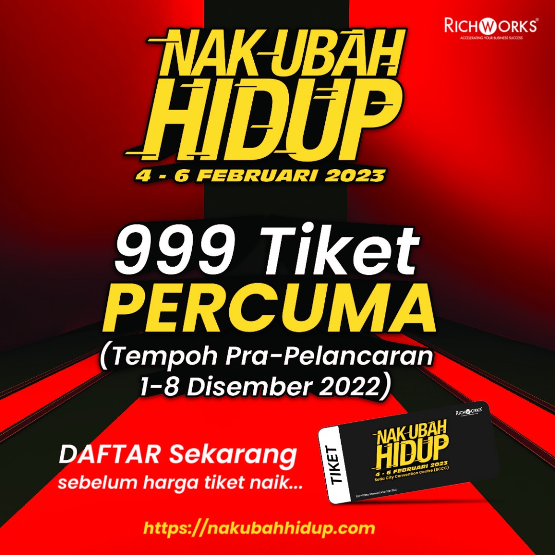 Salam alluser, Moga anda dalam keadaan sihat dan terus fokus dalam bisnes dilakukan sebelum menutup 2022 ini. Masih ada masa, untuk capai target yang disasarkan pada Disember ini jika anda sudah kira magic numbers dan plan tindakan-tindakan yang dibuat untuk mencapainya. Ambil peluang pada malam ini juga untuk plan apa tindakan sepanjang minggu baru ini. Pada pagi tadi, Mentor Usahawan, Datuk Wira Dr. Azizan Osman telah mulakan sesi khas beliau untuk beri manfaat kepada bangsa usahawan menjelang 2023 ini. Sesi Khas di Telegram Azizan Osman Official ini akan dijalankan setiap Ahad pukul 8:00 pagi sehingga penghujung 2022 ini. Dr. Azizan bersama RichWorks nak sediakan alluser dengan mindset dan tindakan yang betul bagi mengharungi 2023. Tahun depan yang dikatakan lebih mencabar dengan kegawatan ekonomi yang dijangka berlaku oleh Bank Dunia, pakar dan penganalisis ekonomi dunia. Sebab itu juga RichWorks bakal lancarkan program Nak Ubah Hidup 2023 pada 9 Disember ini. Pastikan anda jadi terawal untuk dapatkan tiket percuma pada hari pelancaran nanti. Klik link di bawah untuk keterangan lanjut. | |