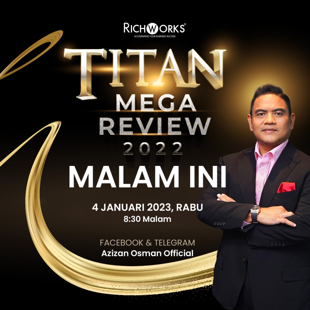 Salam Usahawan alluser, Jatuh bangun dalam bisnes adalah perkara yang biasa. Kadang-kadang bisnes kita berada di atas, ada masanya kita jatuh terduduk. Apa yang membezakan seseorang itu berjaya dalam bisnes adalah, apabila dia jatuh dia segera fikirkan cara untuk bangun semula. Gagal bukan untuk diratapi, tapi untuk lebih kuat lagi berusaha untuk berjaya. Certainty dan kepastian ini yang ada pada Usahawan Jutawan Titanium RichWorks. Mereka tak sentiasa di atas tapi mereka tak berlengah untuk bangkit dan adjust bisnes mengikut pasaran semasa dengan pantas. Dan melalui bimbingan dari RichWorks, mereka lebih faham ke mana arah yang perlu dituju. Tonton Titan Mega Review 2022 MALAM INI jam 8:30 malam secara LIVE di Facebook dan Telegram Azizan Osman Official. | |
