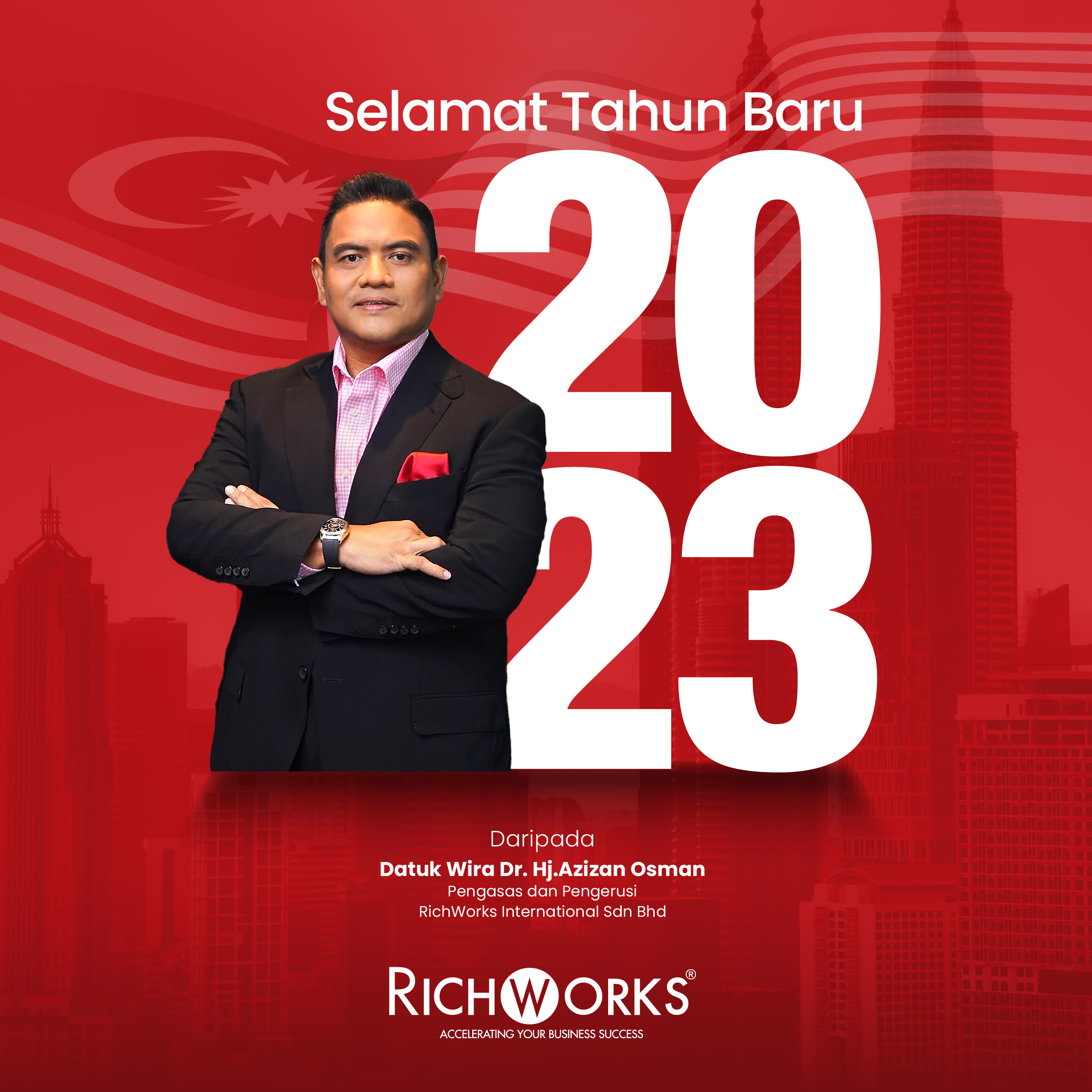 Assalamualaikum wbt & Salam Sejahtera alluser, "Ya Allah, Muliakanlah orang yang membaca doa ini, lapangkanlah hatinya, bahagiakan keluarganya dan luaskan rezekinya seluas lautan yang engkau ciptakan. Mudahkanlah segala urusannya, kabulkanlah cita-citanya, jauhkan dia dari segala penyakit, fitnah, prasangka keji, berkata kasar dan jauhkanlah dia dari segala musibah, serta terimalah semua amal ibadahnya dan kelak jadikanlah dia sebagai penghuni SyurgaMu. Aamiin" Terima Kasih kepada anda semua yang menyokong perjuangan RichWorks dalam membantu ramai Usahawan menjadi Usahawan Jutawan yang berjaya sepanjang 2022. Tahun 2023 akan ada lebih banyak cabaran yang bakal kita tempuhi. Namun, berbalik kepada kita untuk ambil cabaran ini sebagai satu masalah atau peluang untuk capai kejayaan. Kami faham kepayahan hidup yang anda sedang lalui sekarang dan persediaan yang perlu dilakukan untuk tahun akan datang. Sempena tahun 2023 ini, RichWorks nak bantu lebih ramai orang untuk tingkatkan hidup anda dengan berniaga. | |