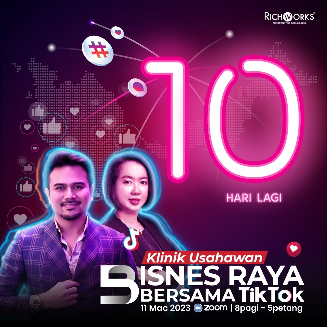 Jangan ketinggalan, Klinik Usahawan: Bisnes Raya Bersama TikTok pada 11 Mac 2023, menerusi platform ZOOM, dari 8 pagi hingga 5 petang.