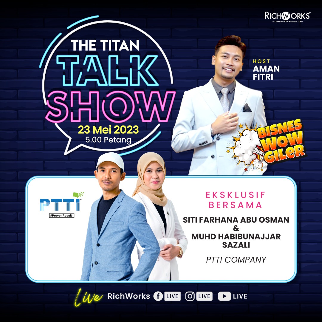Anda nak tahu? Jangan terlepas The Titan Talk Show hari ini jam 5 petang di Facebook, Instagram dan YouTube Channel RichWorks.