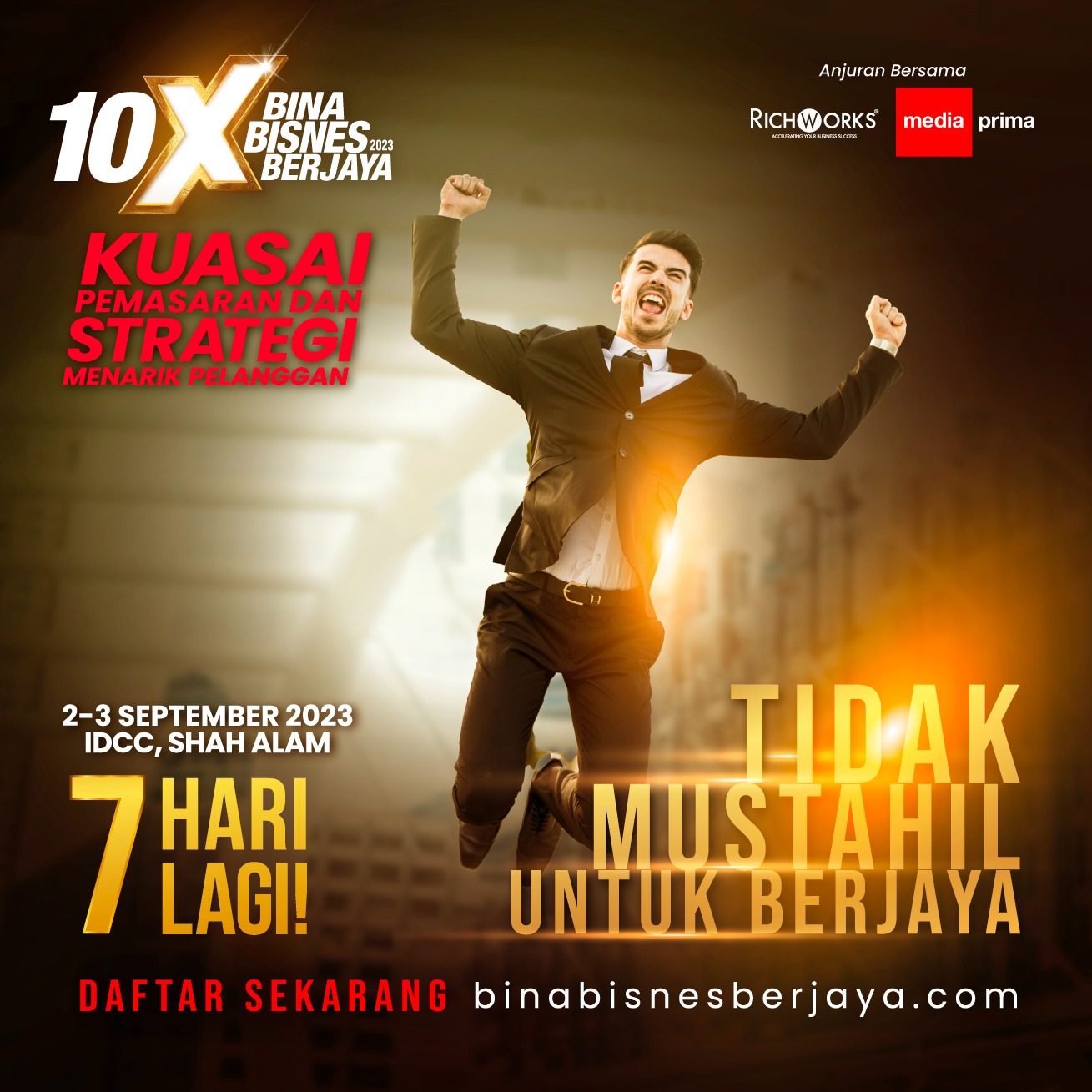 Selamat pagi alluser, Percaya atau tak, setiap hari mesti akan ada satu bisnes yang tak berjaya survive dan terpaksa 'gulung tikar'. Tapi jangan risau sebab RichWorks sedia nak bantu dan support anda untuk membina bisnes yang berjaya! alluser ada masalah seperti di bawah? -Tak tahu hala tuju bisnes -Bisnes dah 1-3 tahun tapi tak ada peningkatan -Nak jana Sales RM1 Juta yang pertama atau lebih lagi -Perlukan bimbingan dan ilmu tentang bisnes -Bines macam dah ok, tapi nak buat lebih lagi Jika anda ada masalah seperti di atas, andalah yang layak untuk sertai 10X Bina Bisnes Berjaya (10XBBB) di IDCC, Shah Alam pada 2 & 3 September 2023 nanti.