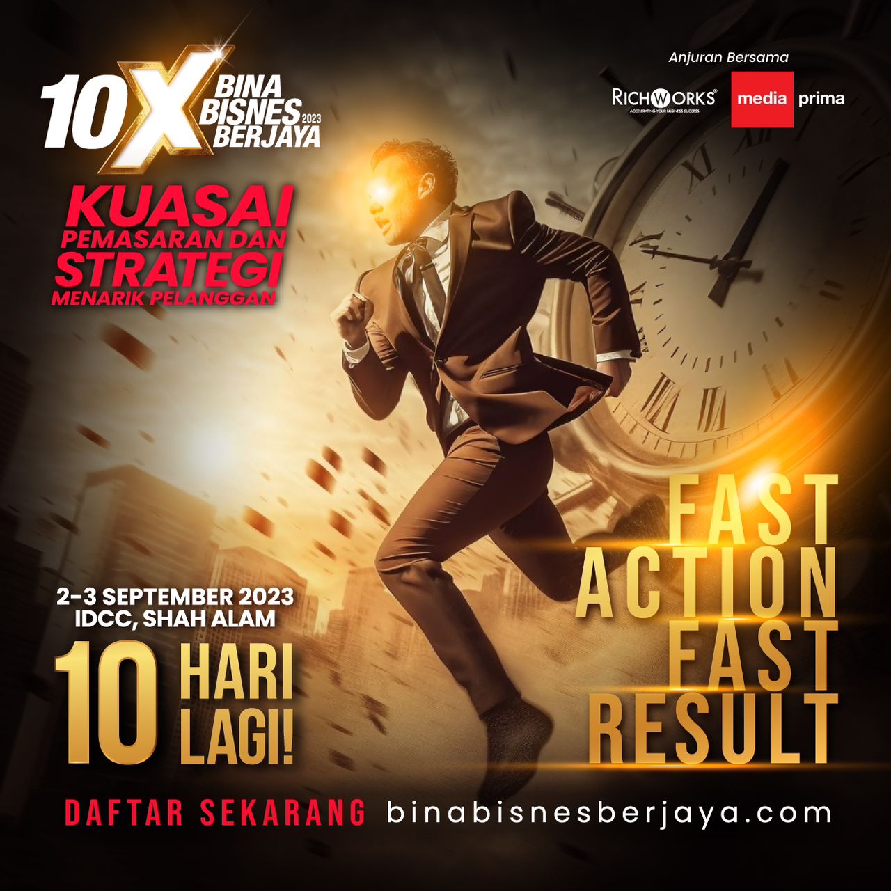 Salam kejayaan, RichWorks International 10 HARI LAGI! Hanya Buat PENGUSAHA & PEMILIK BISNES. Pastikan miliki BOARDING PASS anda untuk ke 10X Bina Bisnes Berjaya. | |