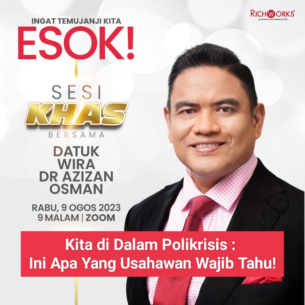 Sehubungan itu, Dr. Azizan menyeru bangsa usahawan yang berdepan cabaran di atas untuk bertemunya secara virtual pada malam esok.
