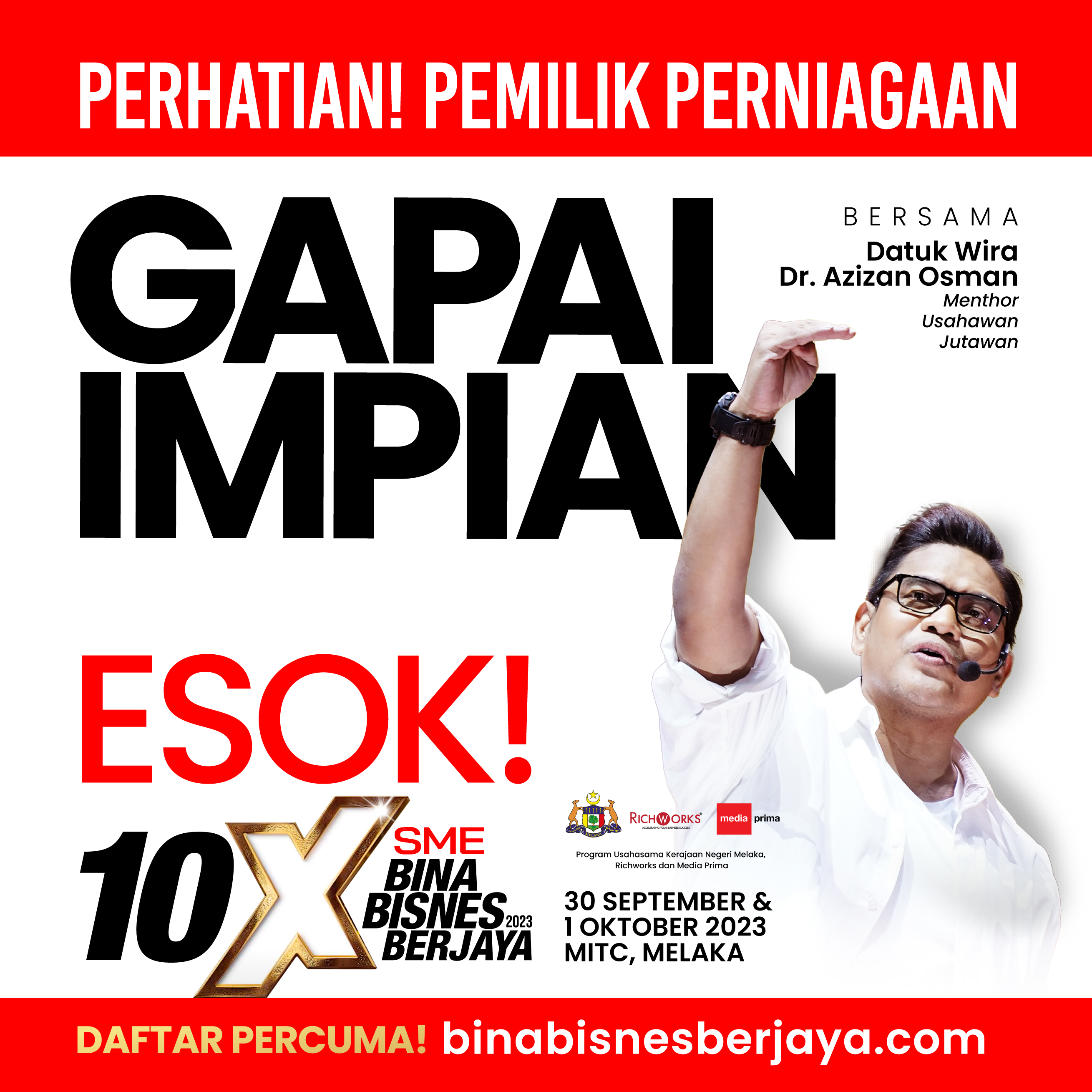 Buat tindakan segera, jumpa anda di 10X SME Bina Bisnes Berjaya.