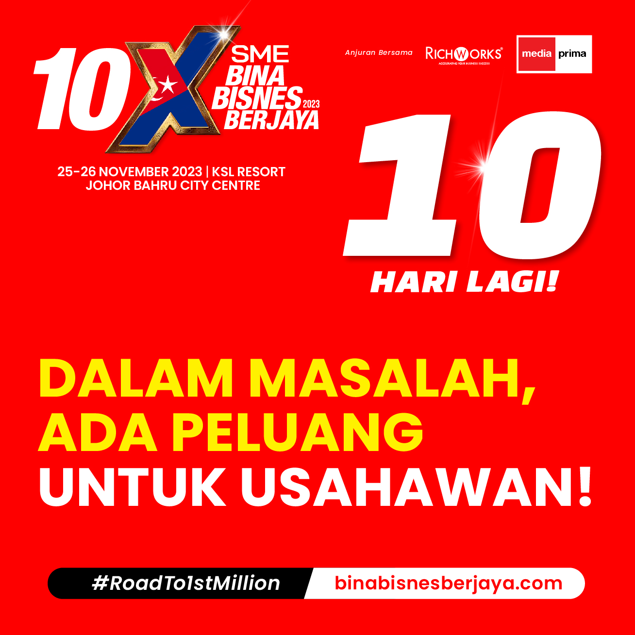 Salam sejahtera alluser, Pernah tak buat bisnes, tapi asyik rugi, rugi dan rugi? Atau mungkin ada keuntungan, tapi hanya cukup-cukup makan? Ada juga yang bisnes tak boleh nak grow? Sampai satu tahap, dah give up dengan cabaran yang tak henti-henti. Ada kalanya sampai stres memikirkan masalah bisnes ni. alluser, dalam dunia bisnes, cabaran dan masalah adalah sebahagian daripada peluang untuk berjaya. Sikap positif dan inovatif dalam menghadapi masalah dapat menjadi pendorong untuk kejayaan yang berkekalan. Apabila anda mula rasa tertekan dengan apa sahaja masalah yang dihadapi, pastikan untuk anda tahu punca kepada masalah yang berlaku. Daripada punca masalah itu barulah anda boleh rancang jalan penyelesaian dan cari peluang untuk perbaiki masalah yang berlaku. Inilah masanya untuk anda meminta nasihat daripada pakar bisnes. Di zaman yang serba moden ini tidaklah sukar untuk mencari seseorang yang boleh bantu untuk selesaikan masalah bisnes anda. Mungkin ini juga peluang terbaik untuk anda mempelajari dengan lebih mendalam tentang dunia bisnes dari guru yang ada proven results. Tak kan dah keluarkan modal, tapi tak ada results. Bertambah stres pula jadinya. Tapi alluser, jangan lupa setiap jawapan kepada masalah adalah dengan memohon pertolongan dari Allah SWT. Doa dapat berikan kekuatan, keyakinan dan keberanian pada usahawan yang hadapi masalah. Doa diiringi dengan usaha yang berpanjangan, insya-Allah anda akan kecapi kejayaan yang tak disangka-sangka. Jom hadiri 10X SME Bina Bisnes Berjaya (10XSMEBBB) di KSL Resort Johor Bahru City Centre pada 25 dan 26 November ini. Bukan hanya dapat berguru, anda juga akan dapat networking bersama circle usahawan yang terbukti berjaya! Tinggal 181 seat lagi, mohon sekarang dengan klik butang di bawah. | |