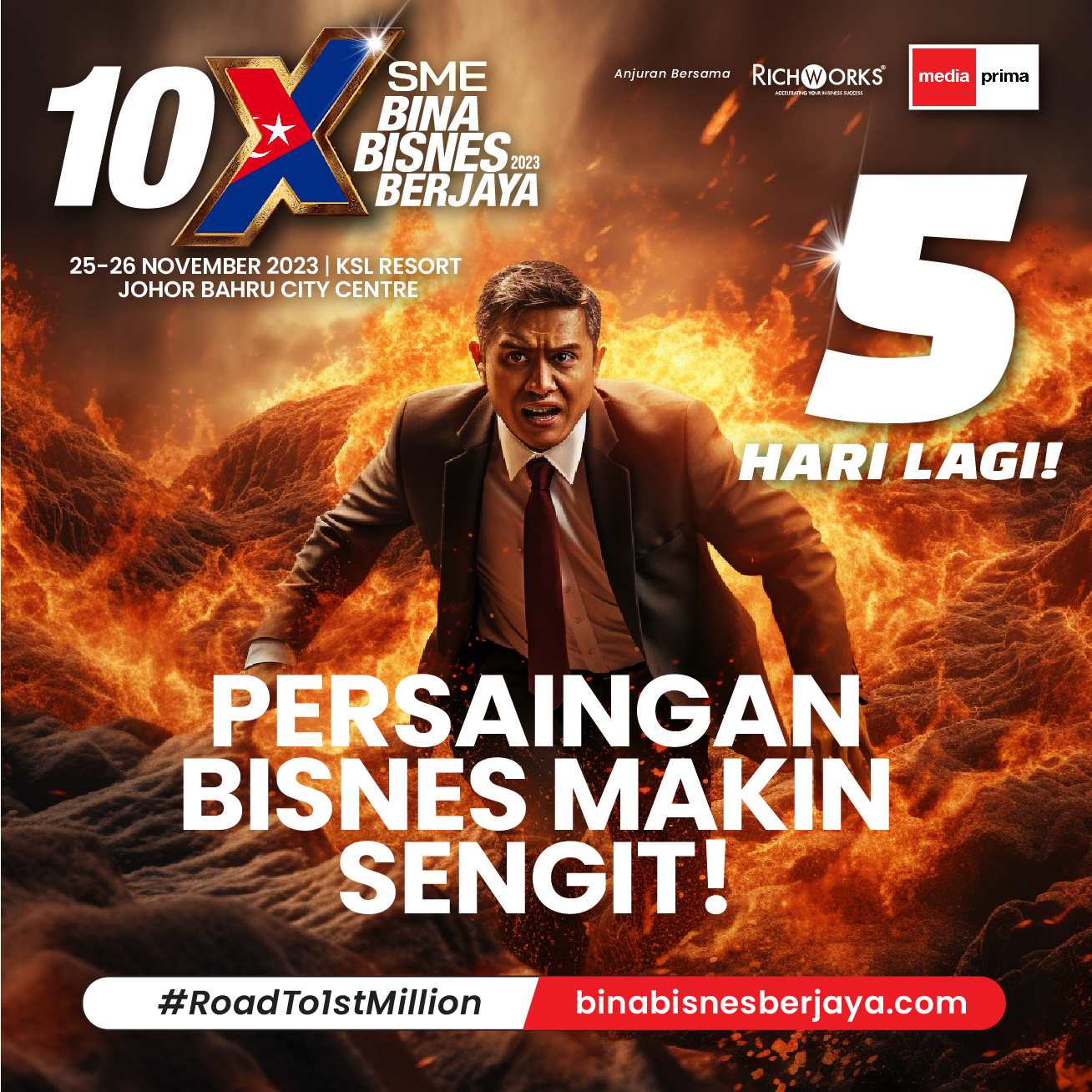Ada banyak lagi cara untuk alluser menang dalam bersaing yang kami nak kongsikan. Tapi, kenalah dapatkan di 10X SME Bina Bisnes Berjaya (10XSMEBBB) di KSL Resort Johor Bahru City Centre pada 25 dan 26 November ini.