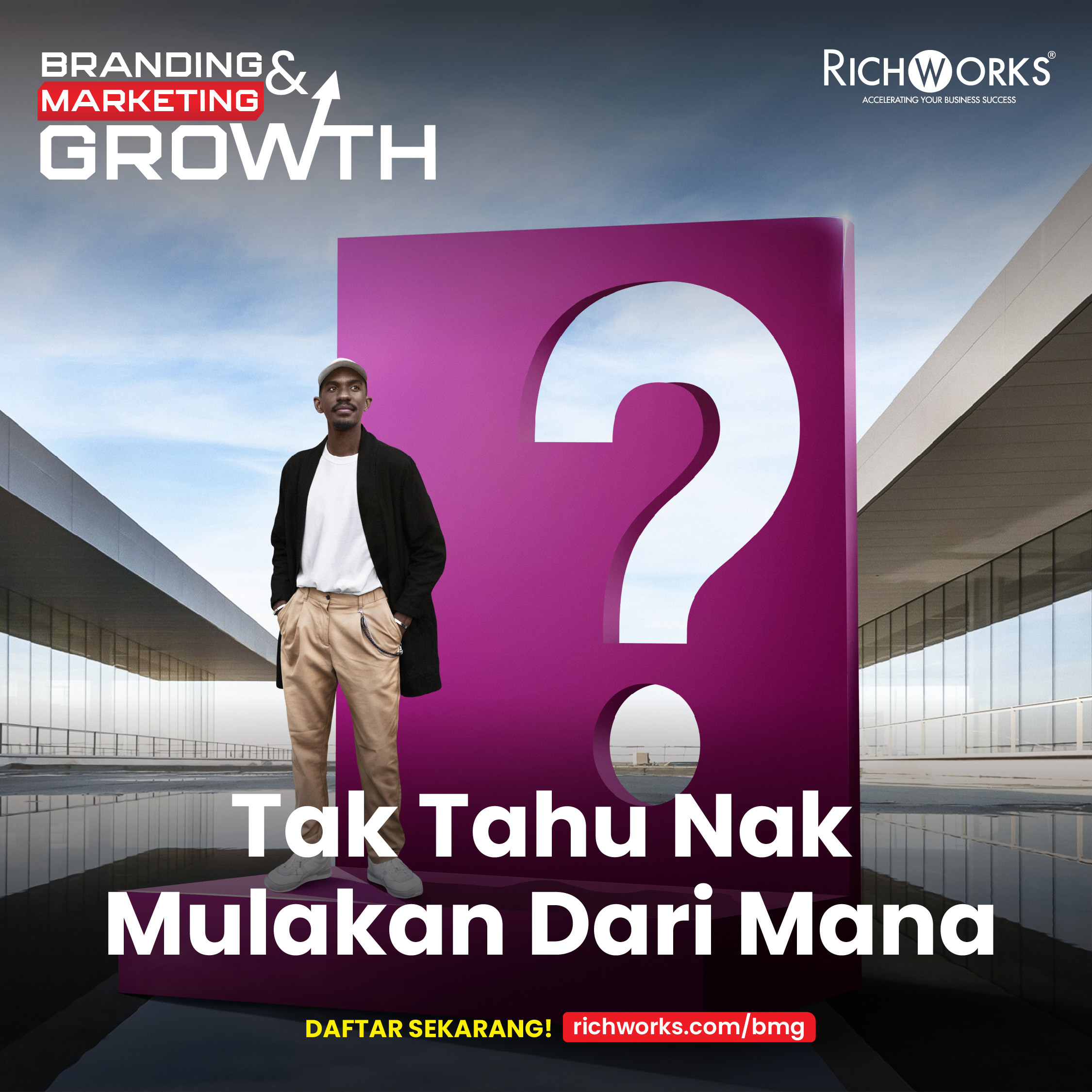 Kami nak jemput anda untuk hadirkan diri ke sesi Branding & Marketing Growth bersama Tuan Radz Mohd, Chief Business Officer RichWorks pada 3 Januari 2024 di platform Zoom. Selain itu, anda juga akan dapat Blueprint BMG 2024 dan Tuan Radz sendiri akan terangkan tentang blueprint tersebut. | |