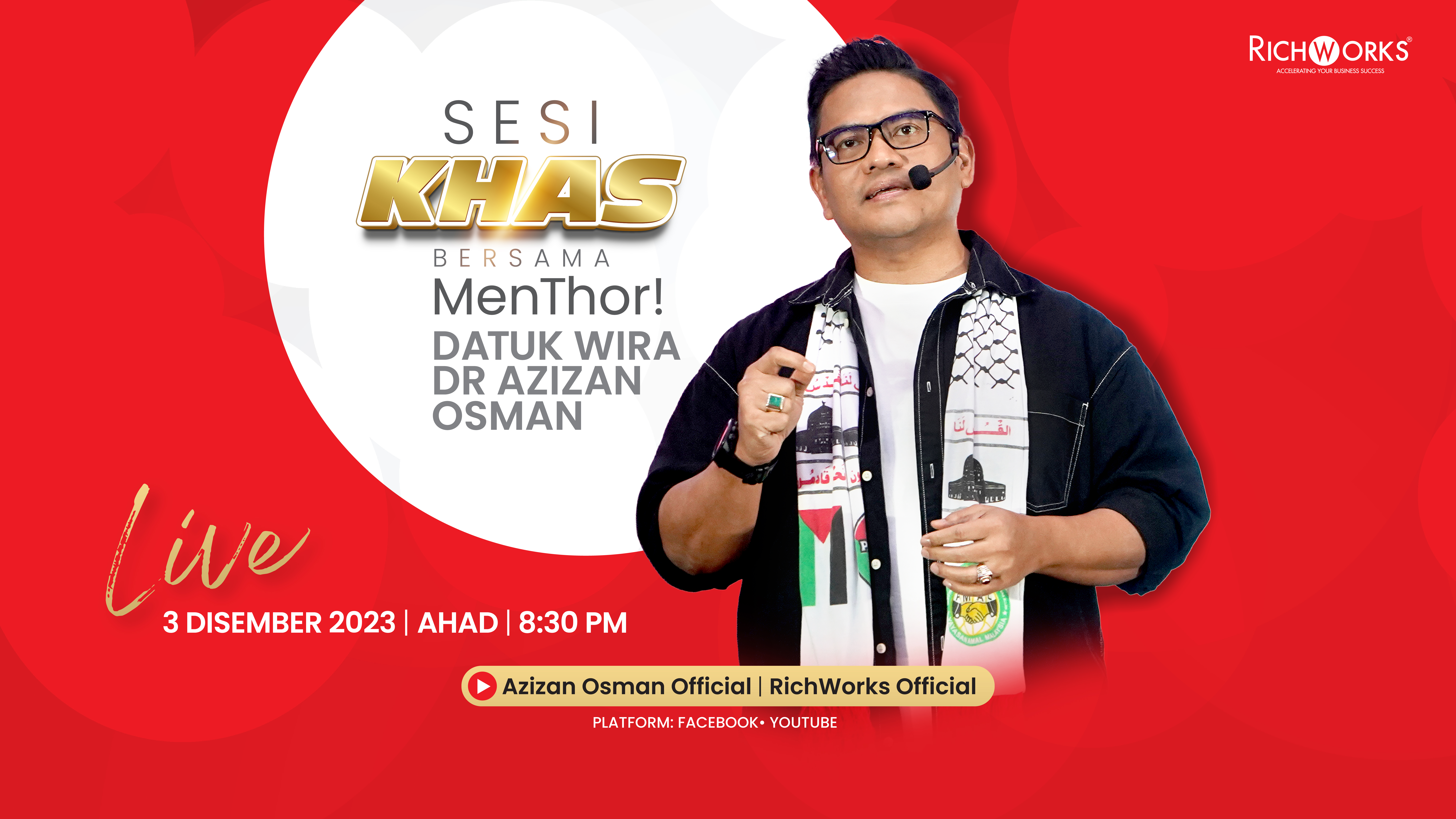 Salam sejahtera alluser, Kurang sebulan sahaja lagi sebelum melangkah ke tahun 2024, apa persediaan anda untuk memastikan bisnes kekal relevan dan berdaya saing? Penting bagi usahawan untuk menyediakan bisnes mereka dengan teliti bagi menghadapi cabaran dan peluang yang akan datang. Tahun 2024 akan ada lebih banyak cabaran yang mendatang. alluser perlu bersiap sedia untuk menyesuaikan diri dari sekarang bagi memastikan kejayaan yang berterusan. Anda perlu sentiasa mengikuti aliran industri dan teknologi baru muncul yang mungkin memberi kesan kepada operasi bisnes anda. Analisis tingkah laku dan pilihan pelanggan untuk memperhalusi produk, perkhidmatan serta strategi pemasaran anda. Kenali juga peluang pasaran baharu dan bakal pesaing untuk meluaskan jangkauan anda serta mengekalkan kelebihan daya saing selain menilai kesan faktor ekonomi dan perubahan peraturan untuk membuat keputusan yang akan datang. Istimewa untuk alluser, kosongkan jadual malam AHAD anda pada 3 Disember 2023 jam 8:30 PM untuk Sesi Khas Bersama MenThor Datuk Wira Dr. Azizan Osman secara Live di Facebook dan Youtube Azizan Osman Official untuk buat persediaan bisnes 2024. Apa agaknya yang nak disampaikan oleh beliau? Klik butang di bawah untuk slotkan masa anda. | |