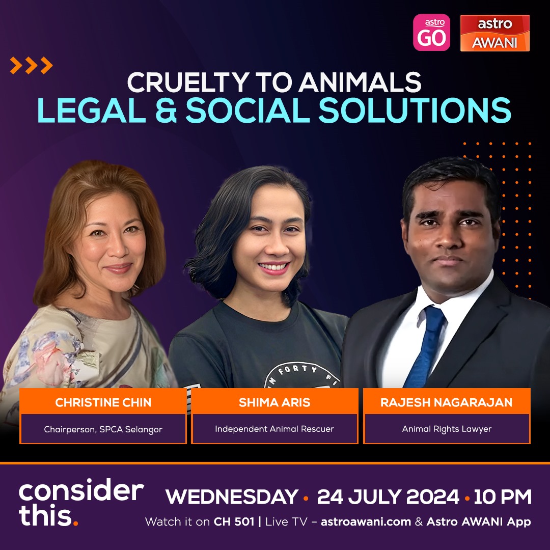 Dapatkan tip menghadapi cuaca panas dan info empangan di sini | | | | | Despite the Animal Welfare Act, cases of cruelty to animals persist— raising questions about the effectiveness of current laws and enforcement. What changes are necessary to plug the gaps in taking action against those who perpetrate cruelty to animals? On this episode of #ConsiderThis Melisa Idris speaks to independent animal rescuer Shima Aris, Christine Chin of SPCA Selangor, and animal rights lawyer Rajesh Nagarajan. | | | | | |