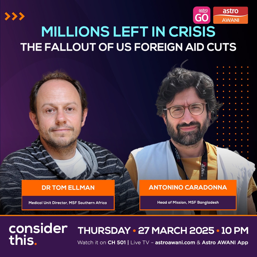 Hantarkan ucapan Selamat hari Raya anda yang paling menarik dan kreatif. | | | | | US President Donald Trump announced in January a pause on foreign aid for an initial 90 days, as part of a sweeping review of government spending. Since then, the majority of the programmes under the US Agency for International Development (USAID) have been terminated. From Bangladesh to Southern Africa, the consequences are already being felt. How much damage has already been done—and is there a way back from this crisis? On this episode of #ConsiderThis Melisa Idris speaks with Dr Tom Ellman, Director of the Medical Unit for MSF Southern Africa & Antonino Caradonna, Head of Mission for MSF Bangladesh. | | | | | |