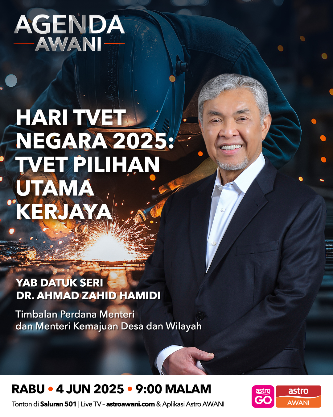 Dapatkan berita ASEAN 2025 di sini | | | | | Sejauh mana Hari TVET Negara memartabatkan TVET sebagai teras pembangunan negara? Adakah sasaran 35% melahirkan pekerja berkemahiran tinggi menjelang 2030 melalui TVET boleh tercapai? Ikuti perkongsian YAB Datuk Seri Dr Ahmad Zahid Hamidi dalam Agenda AWANI. | | | | | |