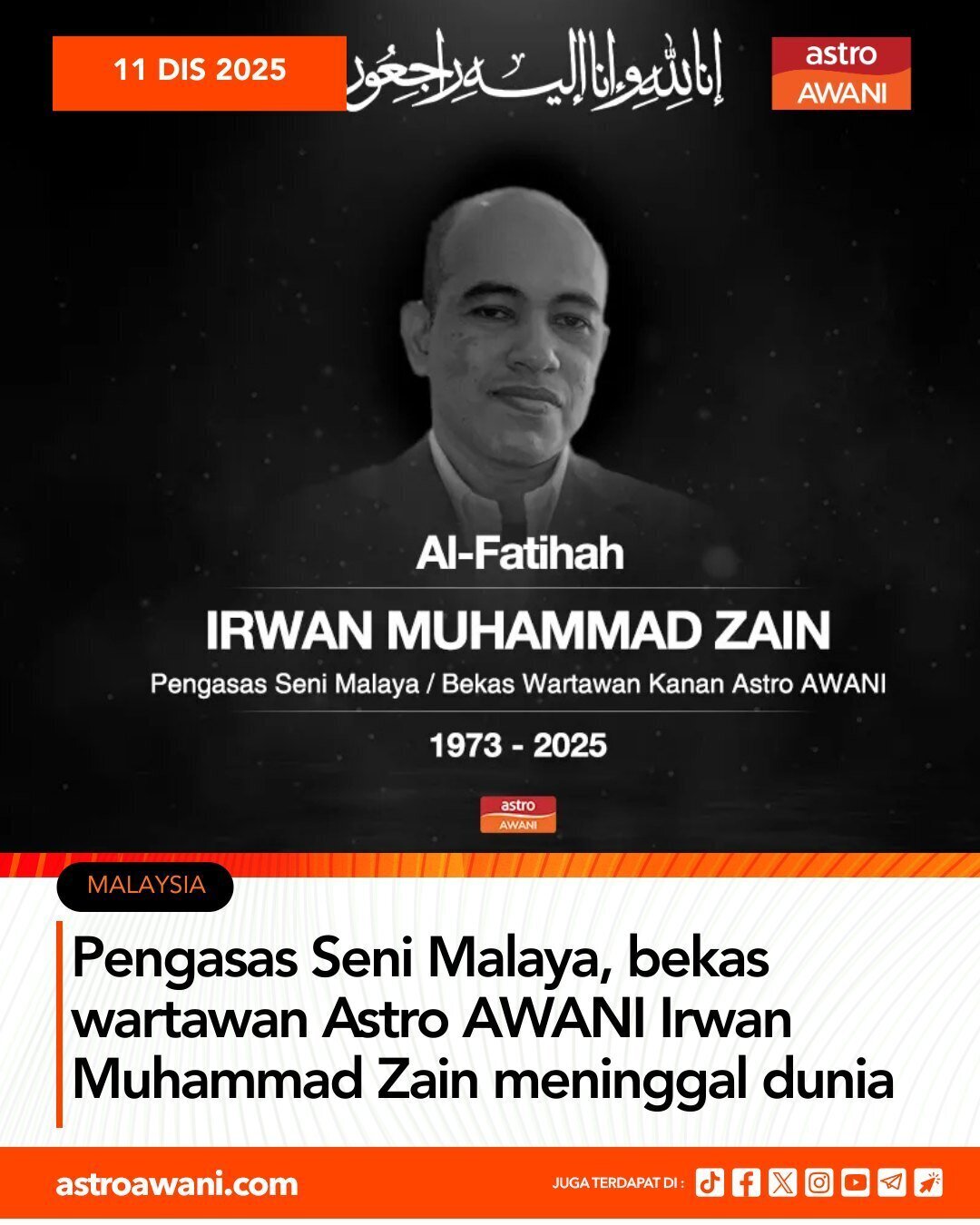 Pengasas Seni Malaya, bekas wartawan Astro AWANI Irwan Muhammad Zain meninggal dunia | | | | | | | |