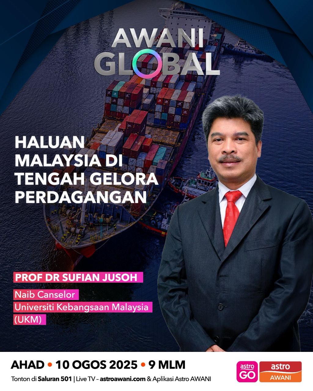 Profesor Sufian Jusoh, Naib Canselor UKM mengupas tentang usaha Malaysia untuk menangani cabaran perdagangan global yang semakin tidak menentu susulan tindakan unilateral Amerika Syarikat bersama hos, Nailah Huda dalam AWANI Global.